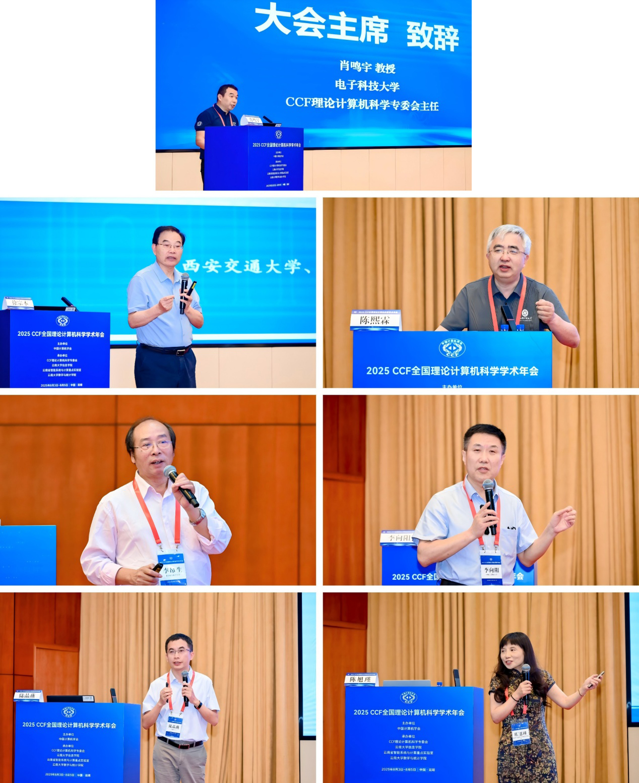 大会开幕式由CCF理论计算机科学专委会秘书长、中国科学院计算技术研究所张家琳研究员主持。云南大学党委副书记吴建德教授和CCF理论计算机科学专委会主任、电子科技大学肖鸣宇教授致辞。