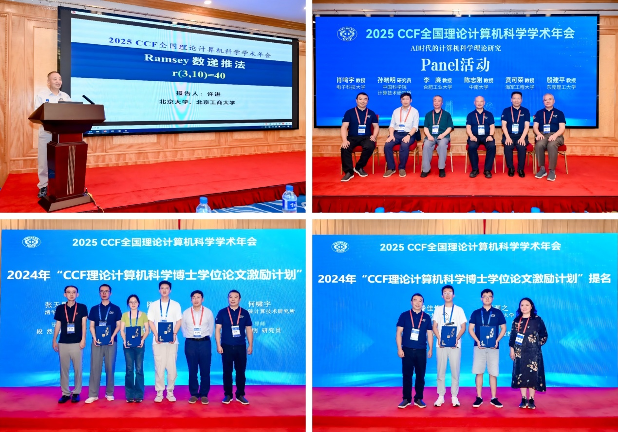 会议设置了多个特色板块,推动学术与产业联动。在专题报告环节,北京大学许进教授作题为《R(3,10)=40》的报告。在博士学位论文激励计划报告会中,5位优秀博士生分享了最新创新成果。在Panel活动中,肖鸣宇教授、中国科学院计算技术研究所孙晓明研究员、合肥工业大学李廉教授、东莞理工大学殷建平教授、中南大学陈志刚教授、海军工程大学贲可荣教授围绕“AI时代的理论计算机科学”展开讨论。在CCF-华为胡杨林基金理论计算机专项报告活动中,7位青年学者展示了各自研究的最新进展和成果。