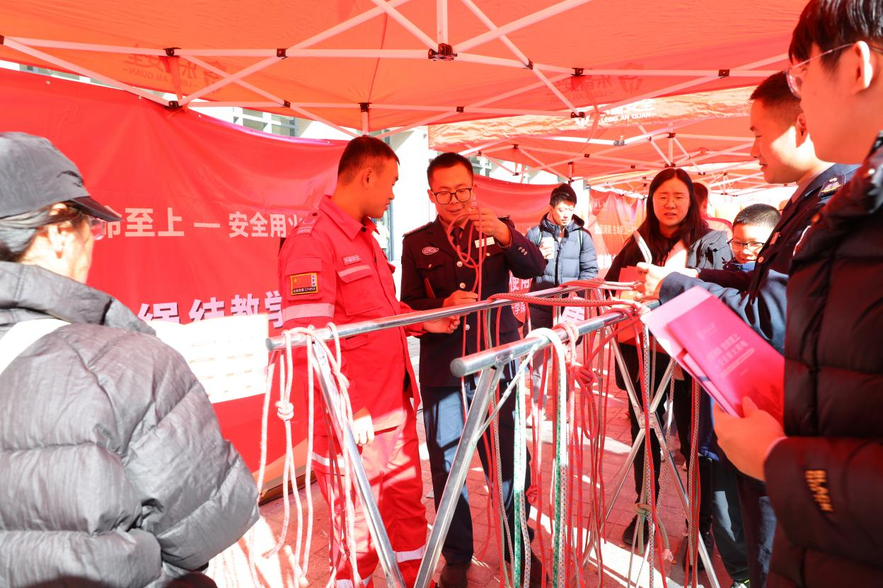 活动现场共设置了包括消防知识答题、模拟烟雾逃生、消防隐患VR排查、灭火毯与灭火器使用教学、救援绳结教学、AED操作培训、模拟电瓶车起火演示、厨房油锅起火扑灭系统体验、燃气与粉尘爆炸演示、模拟触电体验以及实验室安全宣传等在内的16个项目体验区。大家借助消防VR互动体验、模拟烟雾逃生等沉浸式项目,学习灭火器的规范操作,掌握火场逃生技巧,并熟练运用AED等急救技能。各体验区高度还原真实火灾场景与突发紧急状况,为参与者营造身临其境的学习环境,助力师生有效掌握消防安全知识与应对技能。