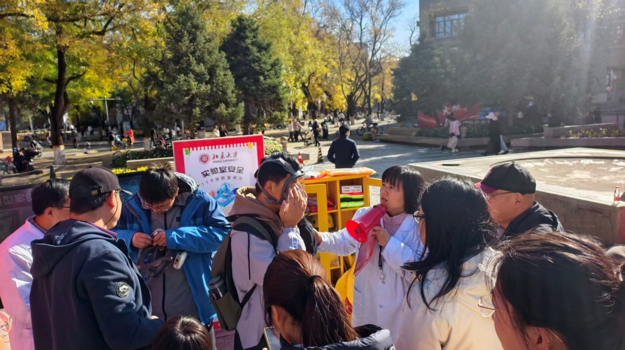 在实验室安全活动区,实验室与设备管理部老师和院系安全员讲解实验室防毒面罩的科学佩戴与使用方法,现场演示如何利用实验室危化品应急物资妥善处置常见试剂事故的规范流程,并对实验室通风橱的正确操作进行介绍。在另一侧的游戏互动区,师生们积极参与“实验室安全隐患纠错”游戏,通过轻松有趣的互动形式,进一步巩固了实验室安全意识和应急处置能力。