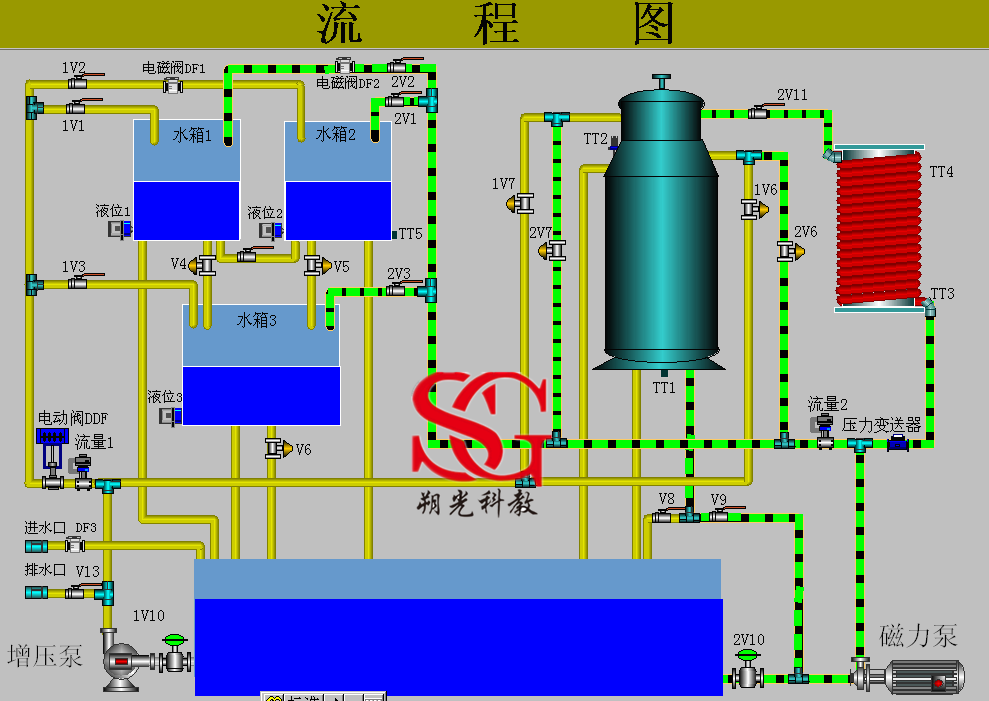 | 盘管 | 只 | 1 | 模拟工业现场的管道输送和滞后环节,在盘管上有三个不同的温度检测点,它们的滞后时间常数不同,在实验过程中可根据不同的实验需要选择不同的温度检测点。盘管的长度为20米,直径为DN15.盘管的出水通过手动阀门的切换既可以流入锅炉内胆。 | SG-GC28-4 | 上海朔光 | |