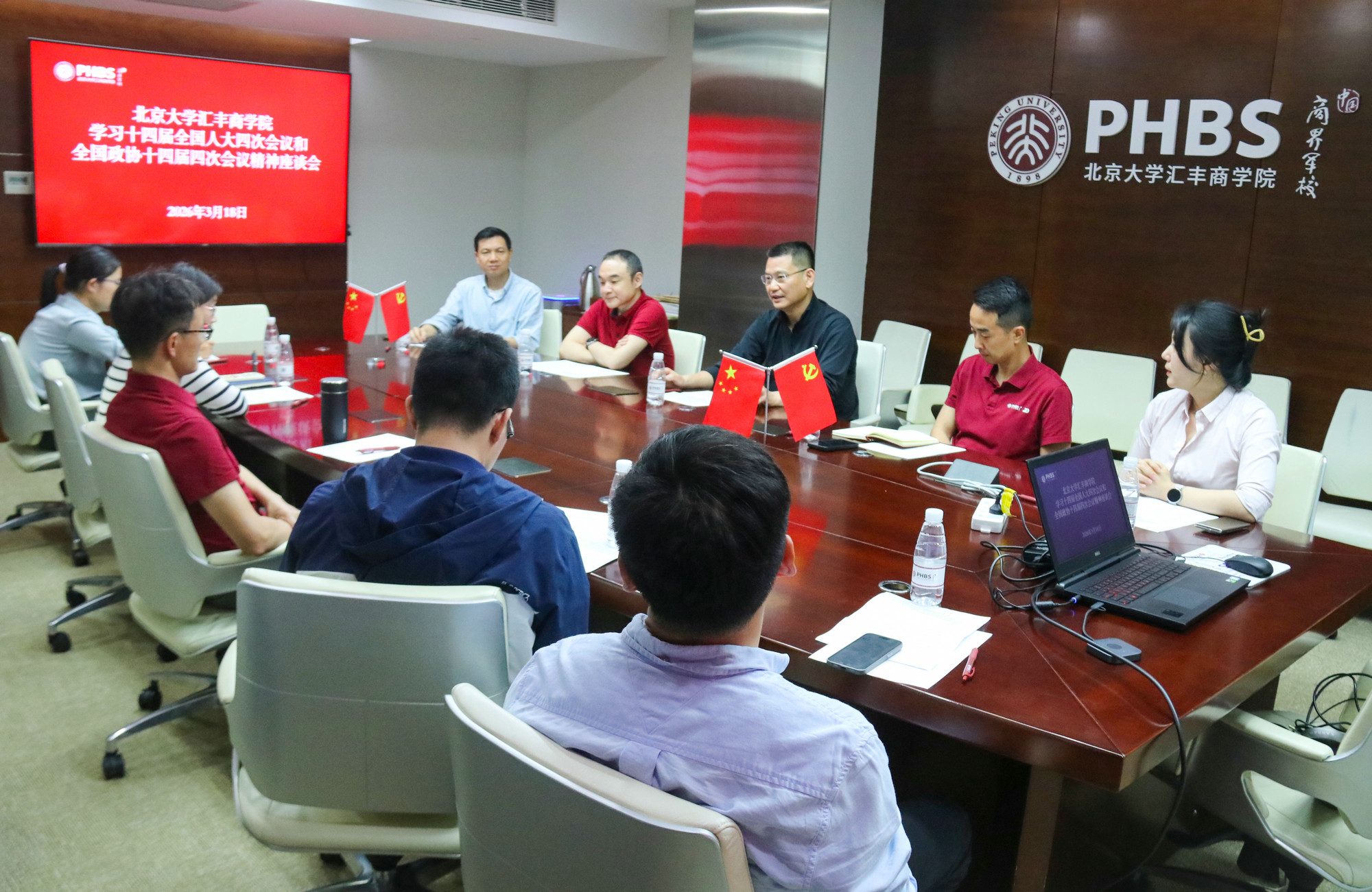 任颋主持座谈会并领学习近平总书记重要讲话和2026年全国两会精神。院长助理、MBA办公室主任刘柏霄,教工党支部书记、金融研究院副院长李荻,智库秘书长岑维,智库副秘书长邹欣,萨金特数量经济与金融研究所副主任史蛟,长聘副教授蔡晓鸣、朱国钟,助理教授马芳原、汪意成分别结合自身专业领域和工作实际,从“国资投资平台的功能与优化”“智库分析框架的系统性和动态性”“金融体系升级与资本市场发展”“就业和劳动力市场”“增强内需对经济增长的持续拉动作用”等角度分享了心得体会。