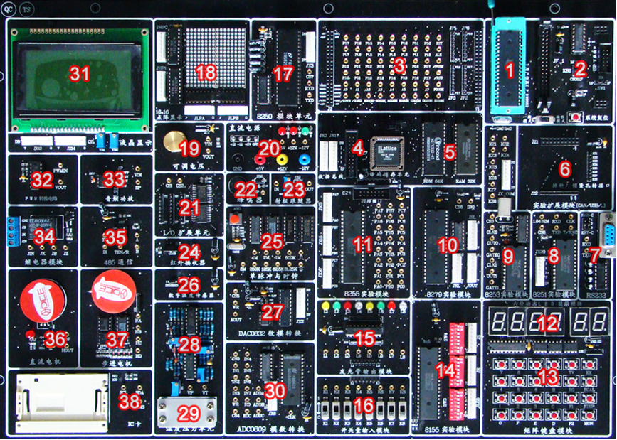 | 18 | 16*16点阵实验模块 | 38 | 接触式IC卡实验模块(标配一块IC卡) |