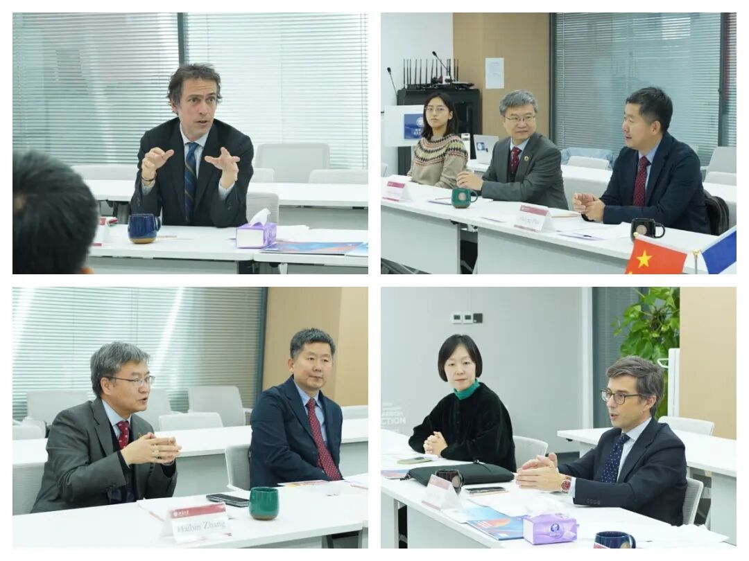 张海滨详细介绍了碳中和研究院的定位、战略研究方向和工作进展。他特别指出,北京大学在气候治理、国际关系、经济政策等领域具有传统优势,与巴黎政治学院在社会科学与公共政策方面的卓越声誉高度契合。未来,双方可在全球气候治理等社会科学和能源转型、绿色发展的相关领域开展合作。